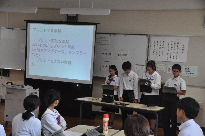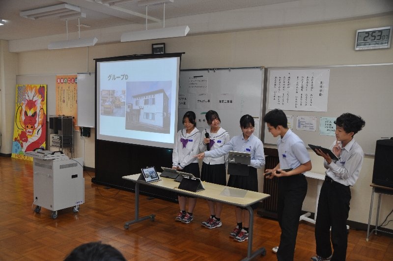 後半のプレゼンテーションでは、各班が聞いた内容をもとに3分間で発表を行いました。