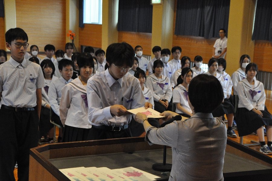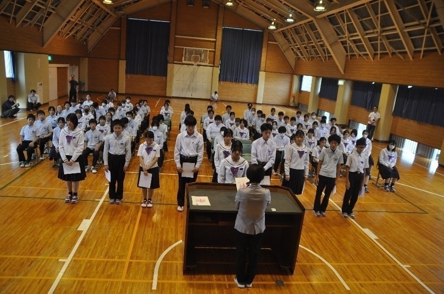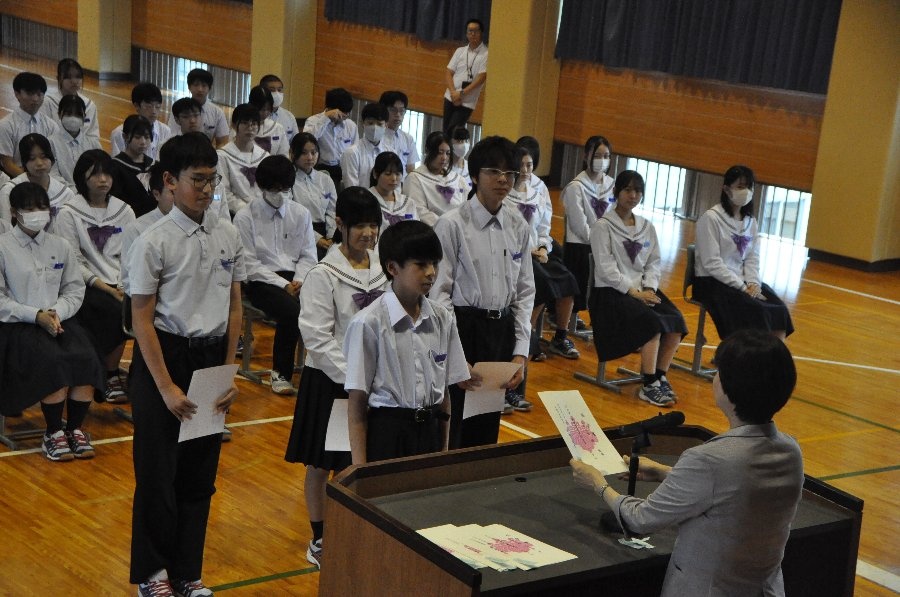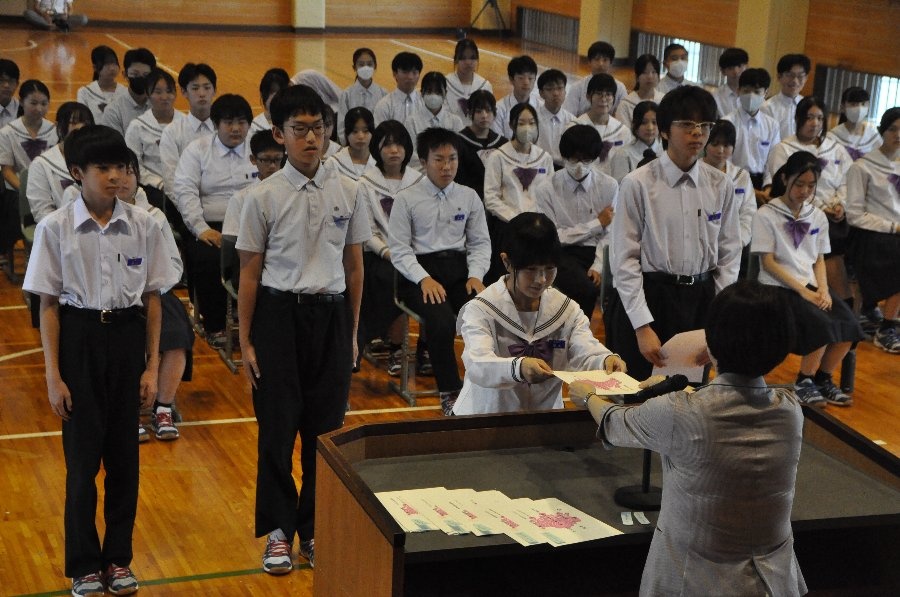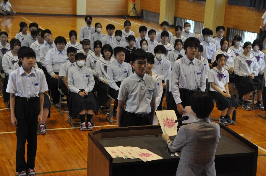 まずは生徒会の任命式が行われ、3年生から2年生へと学校のリーダーが正式にバトンタッチされました。