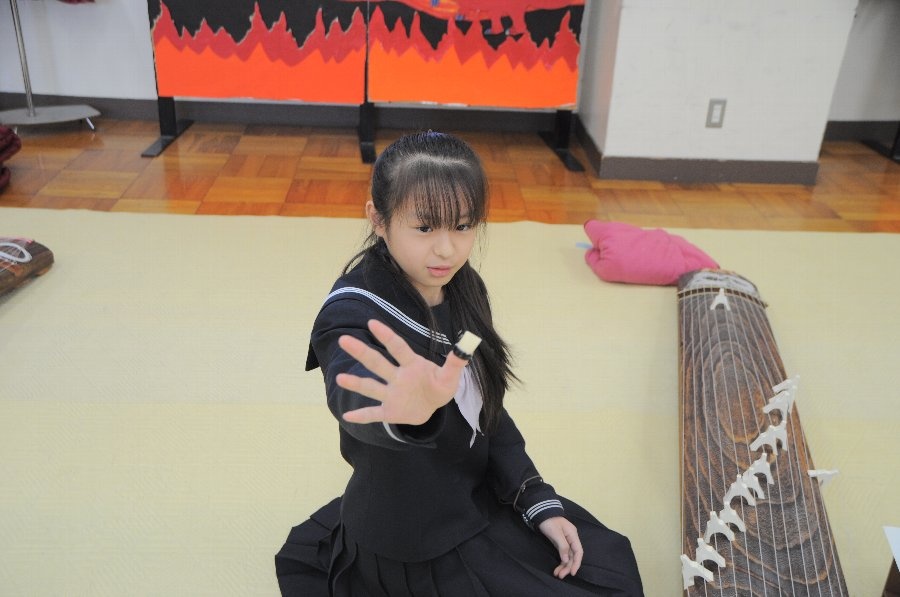 本教室では、日本の伝統音楽に親しむことを目的に、琴と尺八の体験を行いました。