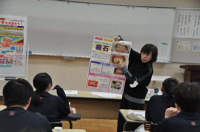 今回のテーマは「歯みがき」。中学1年生・2年生を対象に、歯の健康について学びました。