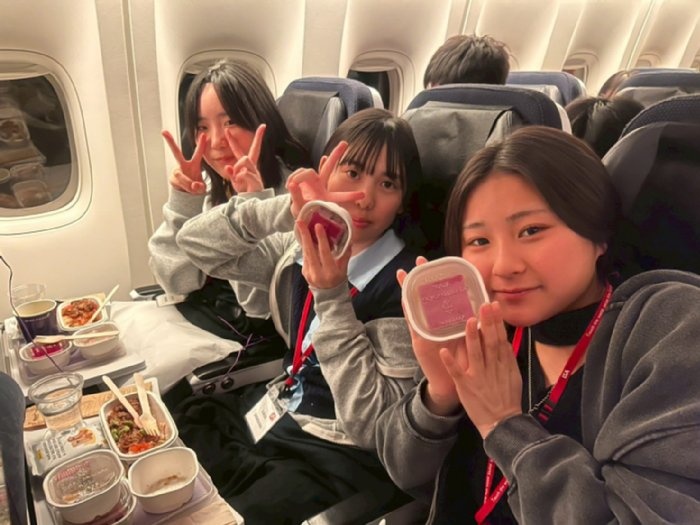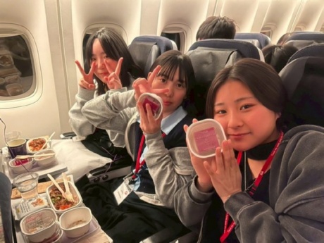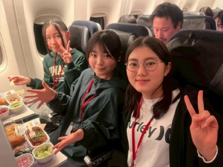 成田空港から約9時間半の長いフライトを経て、現地時間7日午前9時頃、オークランド空港に到着しました。フライト中は、各自が機内食や映画鑑賞など思いのままに過ごし、空の旅を満喫していました。