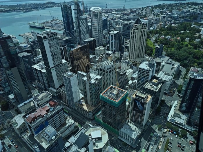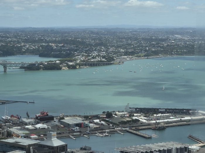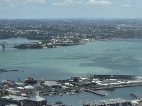 スカイタワーは、展望台からオークランド市街を一望できるだけではなく、世界のタワーでも数少ないバンジージャンプやスカイウィークができるところでも有名です。この日のオークランドは晴天に恵まれ、市街地の奥の方まで見渡すことができました。