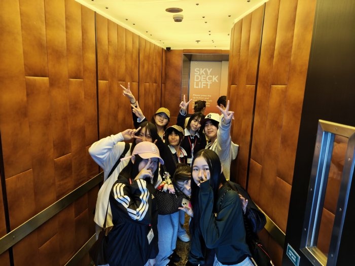 メイン展望台(186m)からでも十分に眺めを楽しめましたが、26期生の多くはさらに上のメインデッキ(220m)まで上がって眺めを楽しんでいました。高所をも恐れない気持ちの強さを持っています。