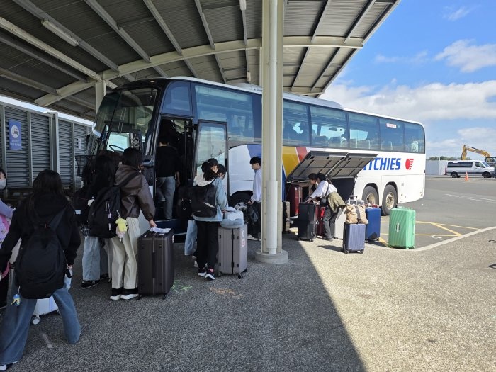 オークランド空港到着後は、入国手続きで手荷物検査などを受けました。全員無事に検査を通りましたが、現地では日本語が伝わらず、税関スタッフとの英語でのやり取りに苦戦する様子も見られました。