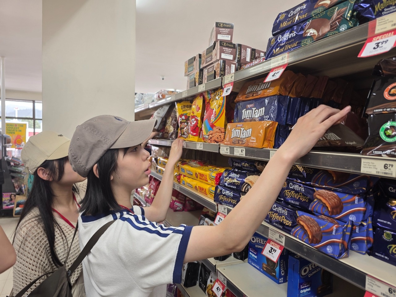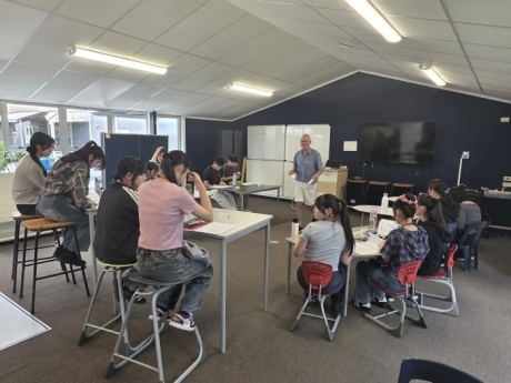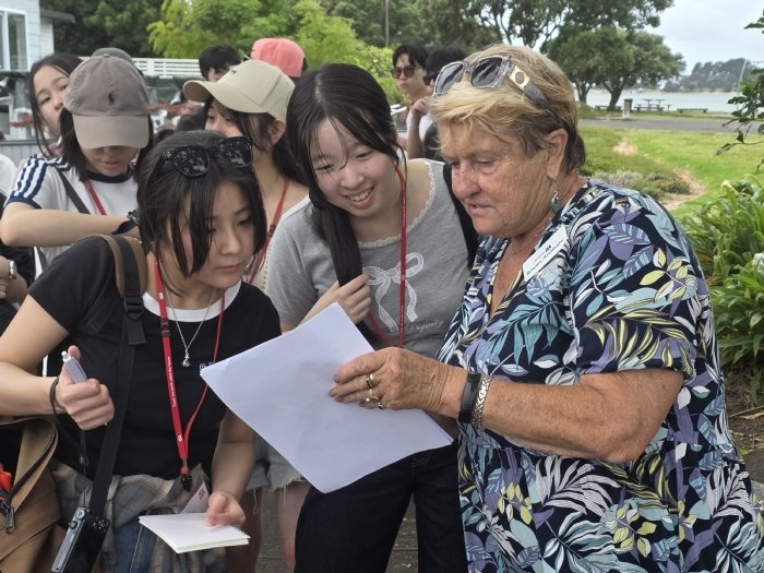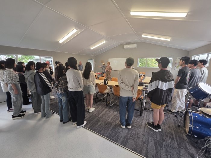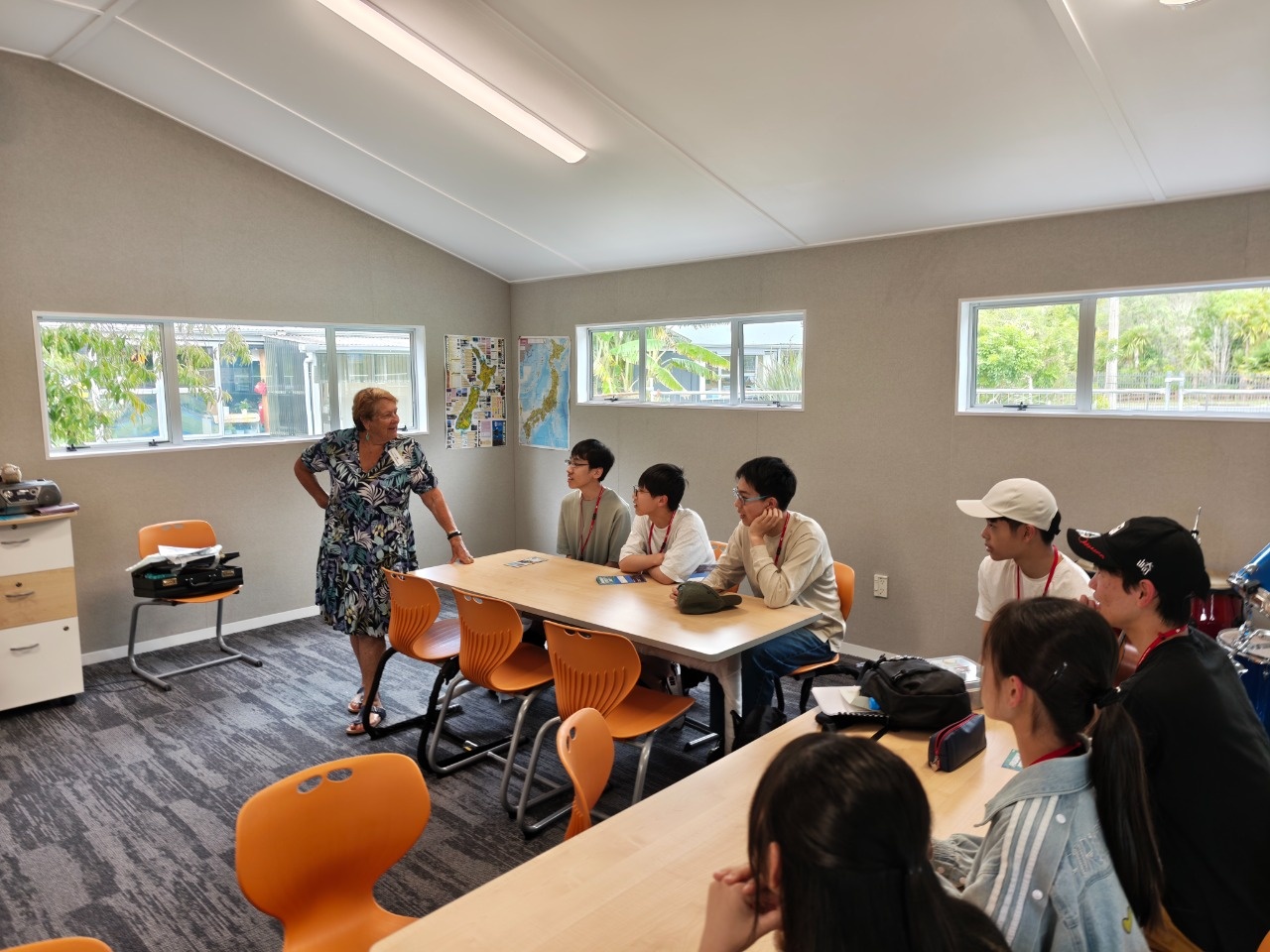 午前中は、2クラスに分かれて、ニュージーランドの日常的な挨拶や通貨に関する授業を受けました。通貨の種類や計算の仕方が日本とは異なることに驚いていたのが印象に残りました。