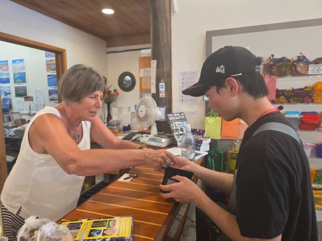 午後の時間は、実際にタイルアの街に出て、フィールドワークを行いました。2時間の活動の中で、26期生はそれぞれ街中の人たちに積極的に質問し、出された問題の正解を導き出していました。また、午前中の授業内容を踏まえて、26期生たちは実際にあちこちのお店で物を購入し、活動を満喫しました。アイスクリームを購入した生徒が多く、日本のアイスクリームとは比べ物にならない程の大きさに驚いていました。