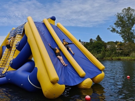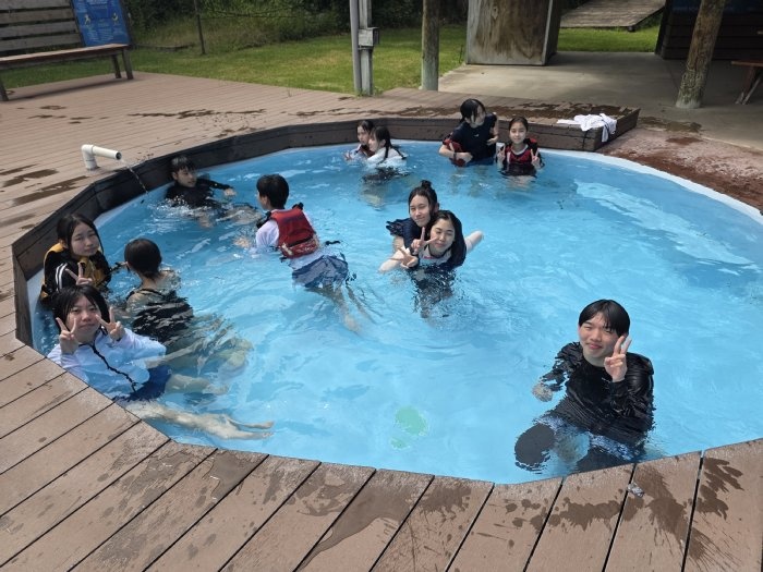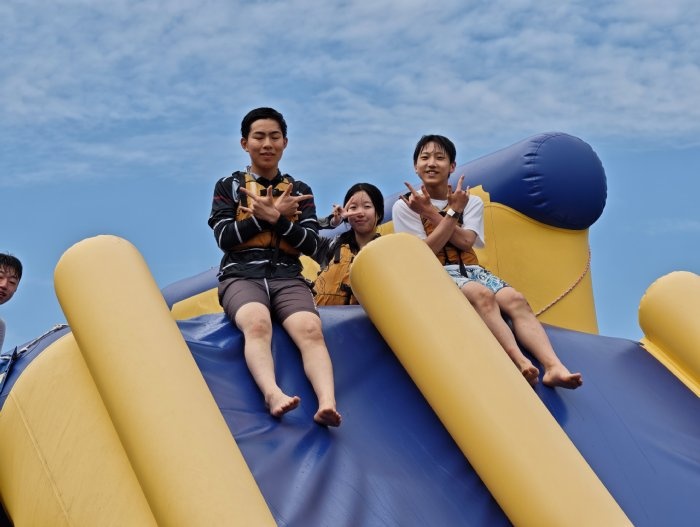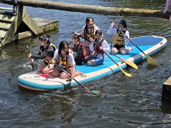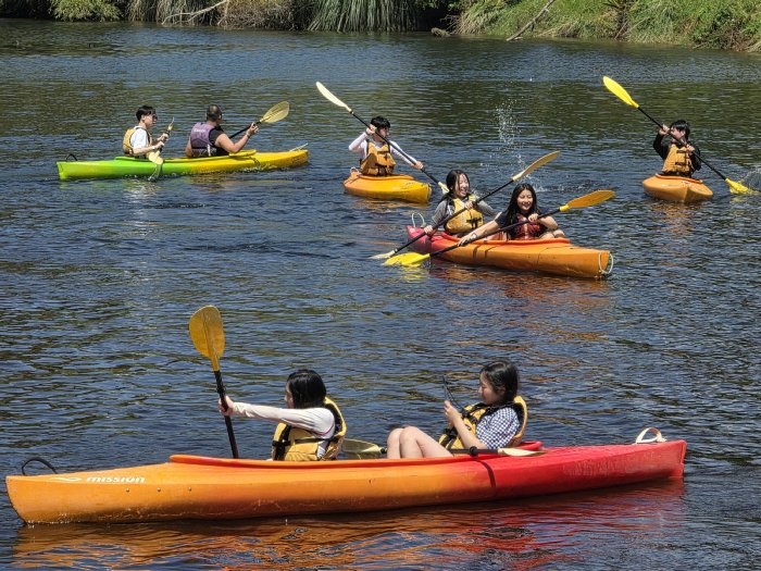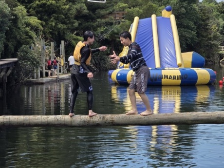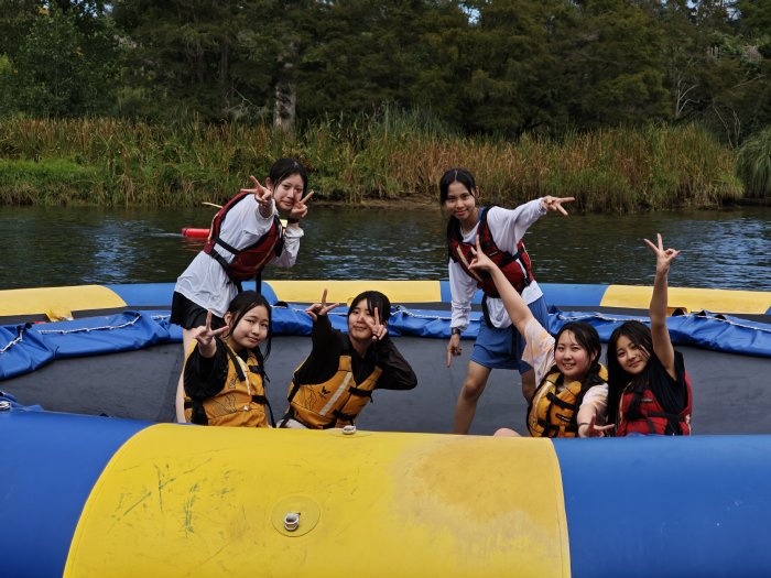 11日、26期生一行はワイマリノアドベンチャーパークへ遠足に行きました。タイルアから車で約2時間のところにあるアクティビティ施設です。26期生は、この施設で様々なマリンスポーツやアトラクションを体験しました。前日夜に行われた消防ショー以上のテンションで、26期生は全身を使ってスポーツを楽しんでいました。川へ飛び込むアトラクションにも果敢に挑戦していました。とても勇敢です。カヤック体験では、自力で操縦するのに苦戦していましたが、だんだんコツを掴んで自由自在に操縦できるようになりました。