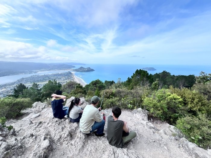 また、パウアヌイの街にそびえ立つパウアヌイ山(標高387m)は登山やトレイルができます。ニュージーランド内ではトレイルの大会が開かれる場所の一つだそうです。登山の際に、靴の裏を消毒してから入る決まりもあり、自然環境の保護を徹底しています。登頂には約1時間半かかりますが、頂上からはパウアヌイやタイルアの町を眺めることができます。