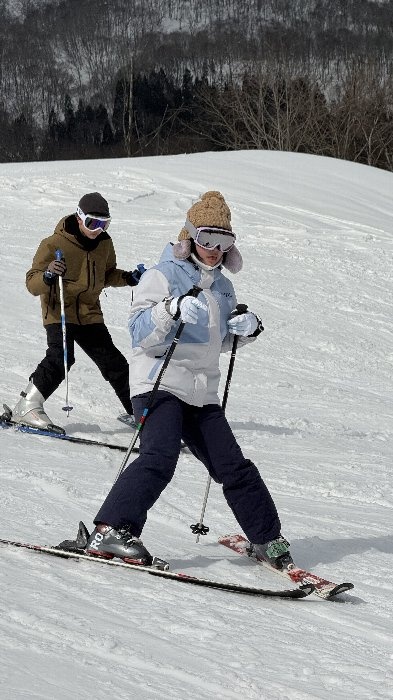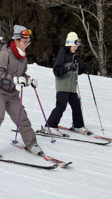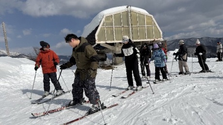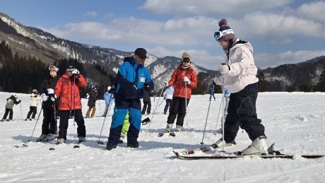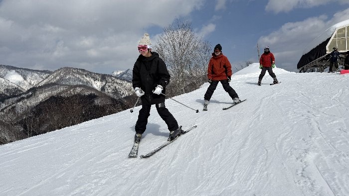 2日目は、午前中2時間の実習です。思い思いに滑走して楽しむ上~中級班や初めてリフトに乗った未経験者班が次々に下りてきて、たった1日でここまで上達するのかと驚かされるばかりでした。