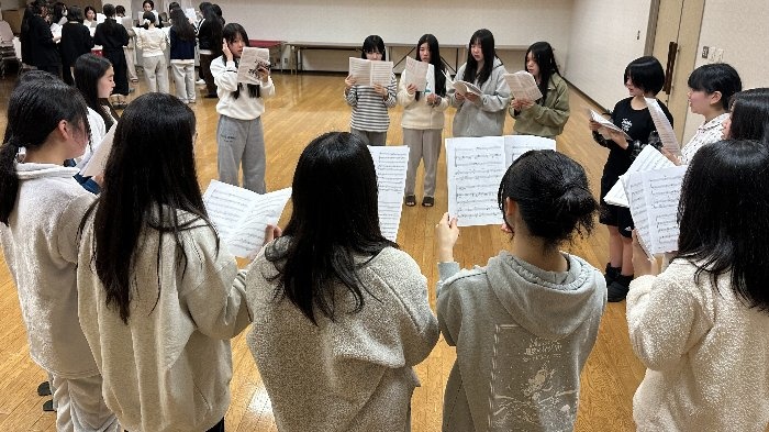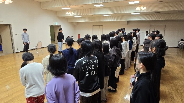 1日目の実習を終えた後、フレアール和泉に移動して温泉や食事を楽しみ、夜には3送会の合唱の練習を行いました。素晴らしいハーモニーを3年生に届けようと真剣に取り組んでいました。1年生にとっては初めての宿泊行事となり、消灯までの時間を楽しく過ごしていたようです。