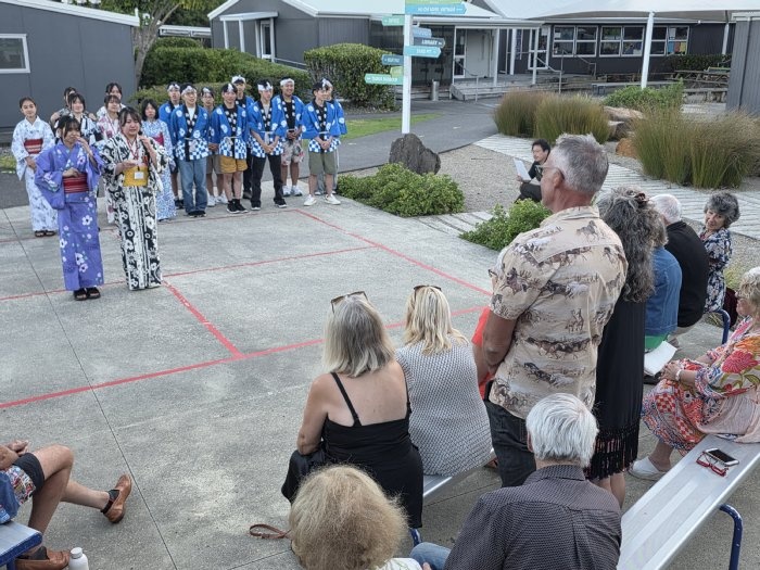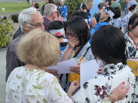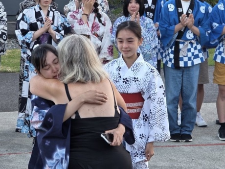 まず、生徒たちが日本舞踊や合唱を披露し、会場には温かい拍手が響き渡りました。その後、ホストファミリーへの感謝を込めたスピーチが行われ、生徒一人ひとりが英語で思いを伝えました。26期生、ホストファミリーの目には涙が浮かぶ場面もありました。