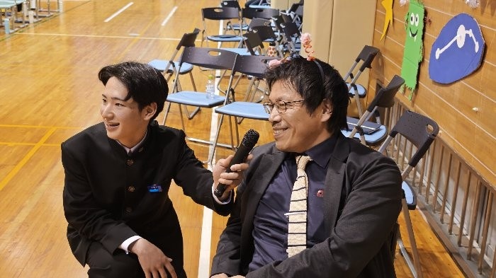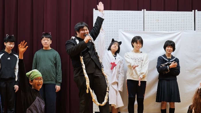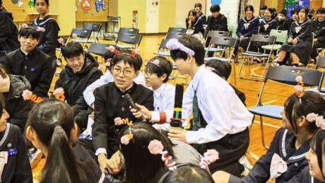 当日は、演劇、ゲーム、プレゼント、合唱と、心のこもった出し物が次々と披露されました。会場は序盤から笑顔と笑い声に包まれ、3年生も後輩たちの企画に楽しそうに参加していました。先輩を思う後輩たちの気持ち、そしてそんな後輩たちをあたたかく見守る3年生の姿からは、北陸中学校で受け継がれてきた先輩・後輩の絆の深さが感じられました。3年生にとっても、後輩たちの成長した姿は、とても頼もしく映ったことと思います。