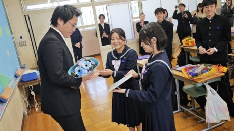 3年生の皆さん、ご卒業おめでとうございます。高校での更なるご活躍を心から願っています。そして、またいつでも中学校に遊びに来て下さい。たくさんの思い出をありがとう。